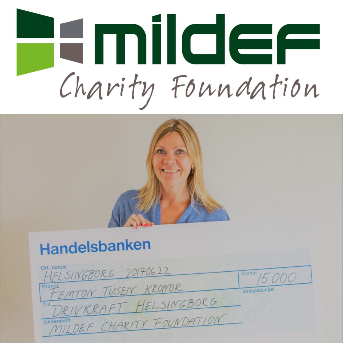 Vi på MilDef Charity Foundation är stolta att få vara med och stötta Drivkraft Helsingborgs verksamhet.”